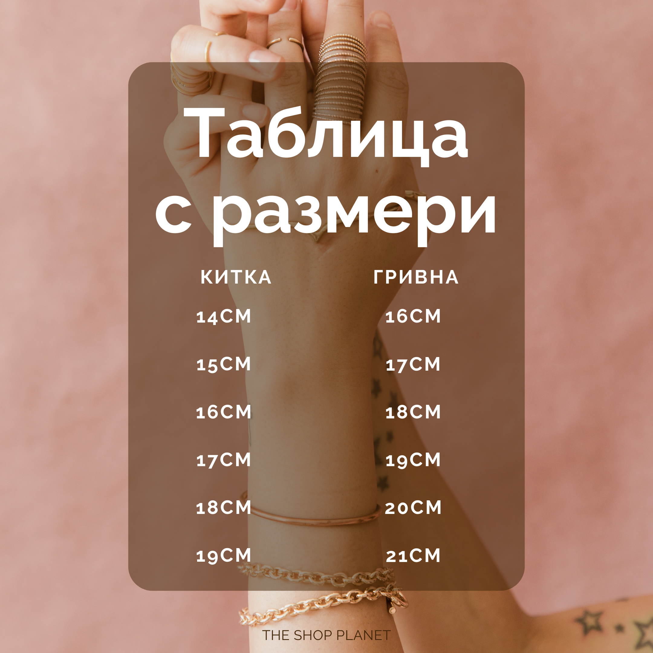 Таблица с размери на гривни
