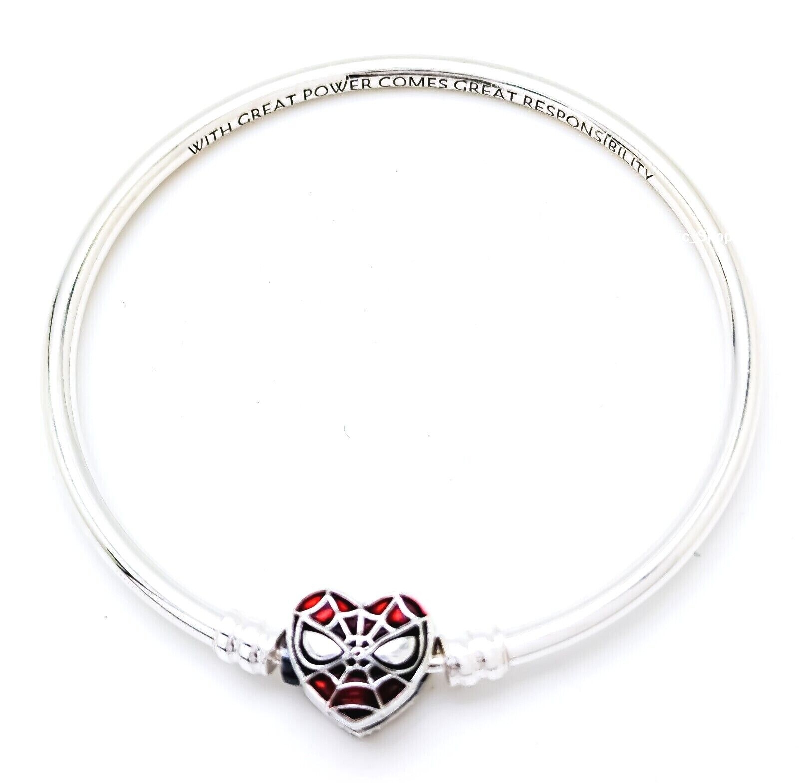 Твърда сребърна гривна внимателно проектирана със закопчалка във формата на сърце, тази гривна е вдъхновена от един от най-емблематичните герои - Спайдърмен.