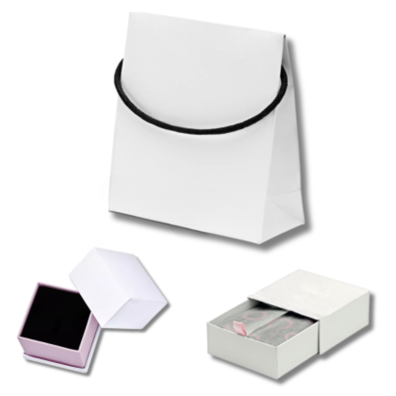 Брандиран подаръчен комплект, който включва хартиена торбичка, кутийка за пръстени/талисмани, кутия за гривни + подарък картичка с инструкции. Добавете перфектния завършващ елемент към Вашия подарък.