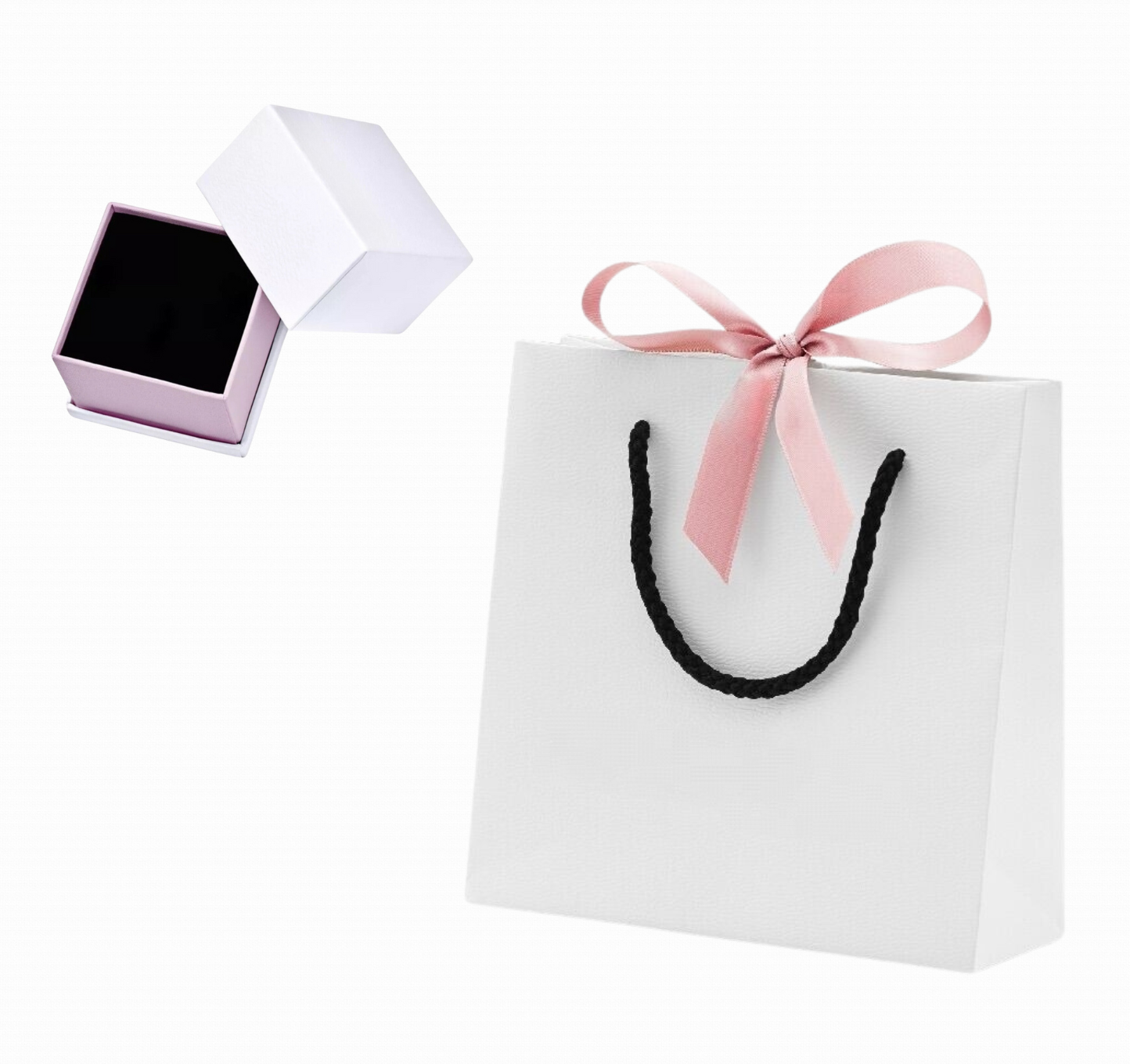 Брандиран подаръчен комплект съдържащ елегантна хартиена торбичка с панделка и малка кутийка за пръстени и талисмани. Поднесете чудесен подарък на скъп човек по най-добрия начин.