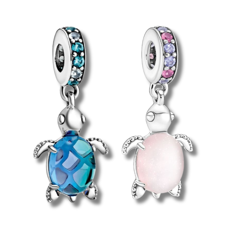 Сет талисмани „Синя и Розова костенурка“ - Цветен и игрив сет с две костенурки – едната в нежно розово, другата в свежо синьо. Символи на спокойствие и защита, идеални за добавяне на смисъл и стил към всяка гривна.