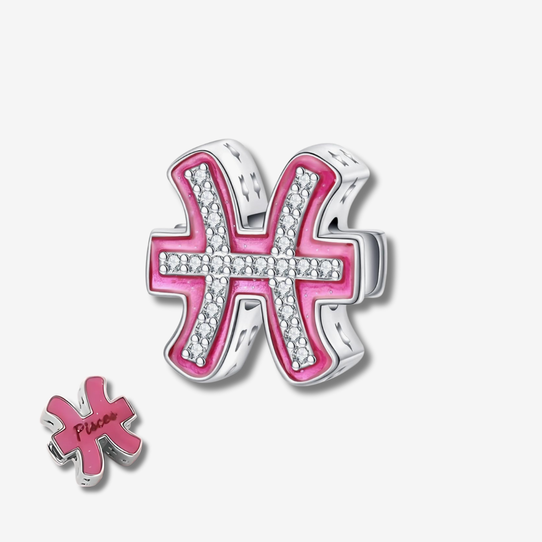 Мистични, романтични и мечтателни - зодия Риби носи в себе си магията на въображението и нежността. Сребърният талисман „Риби“ е изработен от висококачествено сребро проба 925 и инкрустиран с блестящи цирконий, които символизират сияйната им душа. Розовият емайл в барби стил добавя деликатност и женственост, подчертавайки романтичната им натура.