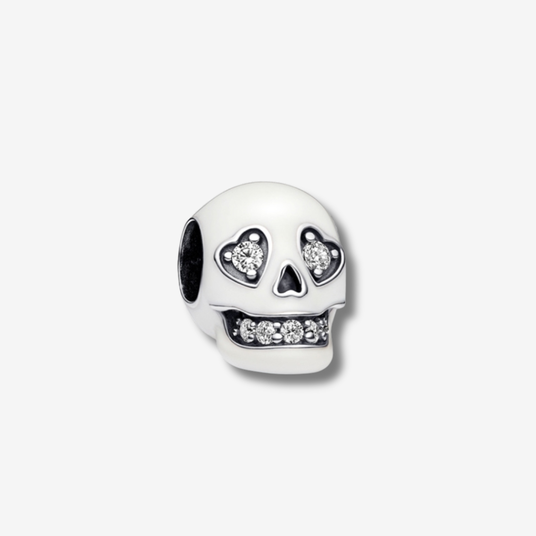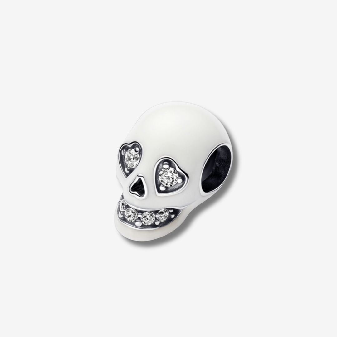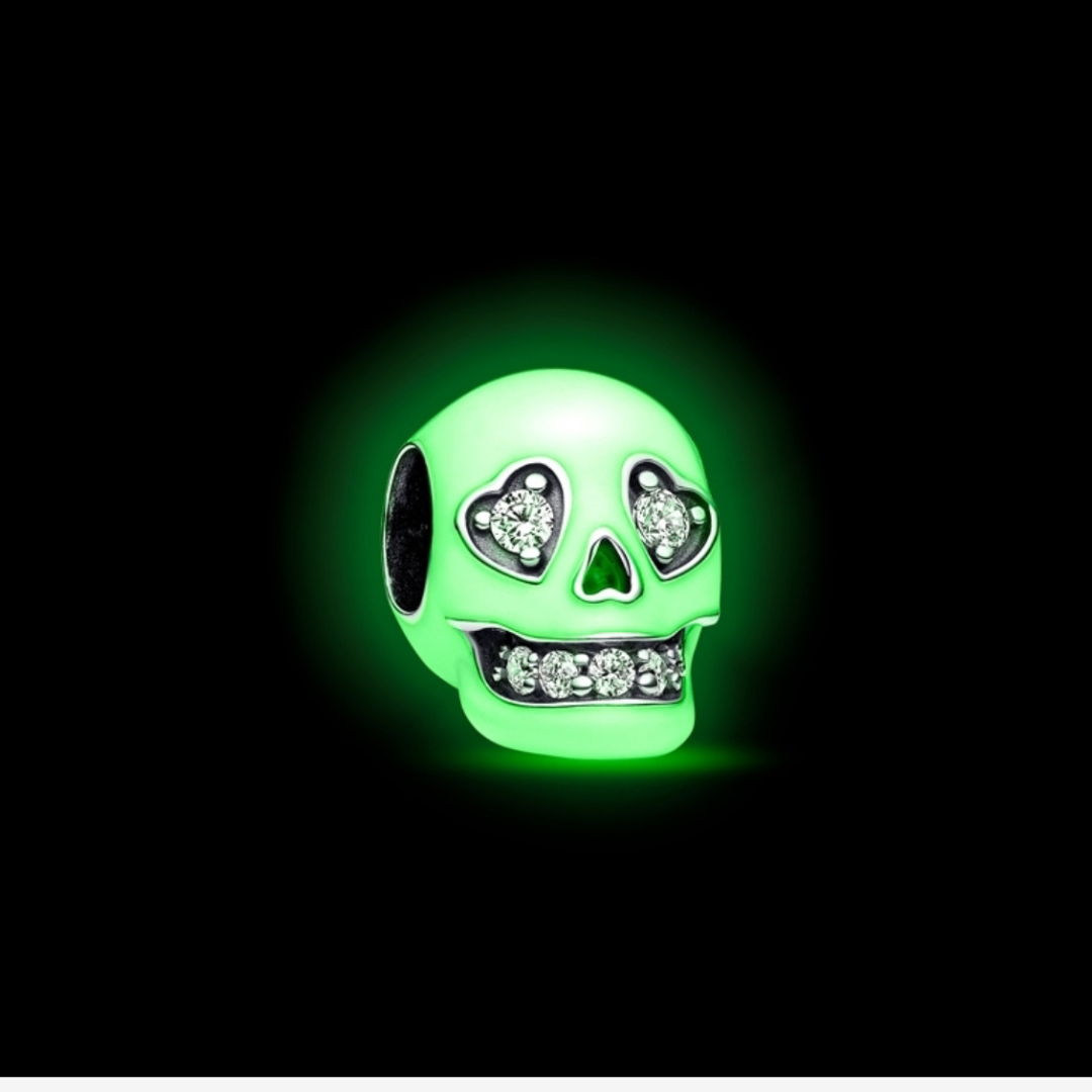 Сребърен талисман „Светещ череп“ - фосфоресциращ череп, инкрустиран с цирконий и покрит с емайл, който свети в тъмното. Стилен, мистериозен и с характер. ?✨
