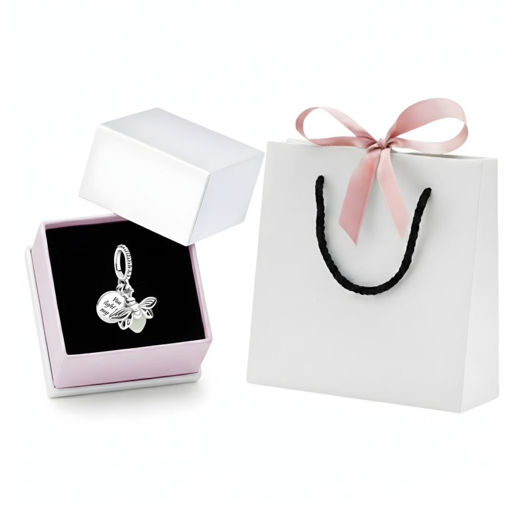 ✨ Нежен сребърен сет с талисман „Светулка“, който свети в тъмното, поднесен в елегантна подаръчна кутийка и торбичка с панделка - малък жест, който казва „Ти осветяваш живота ми“. ?