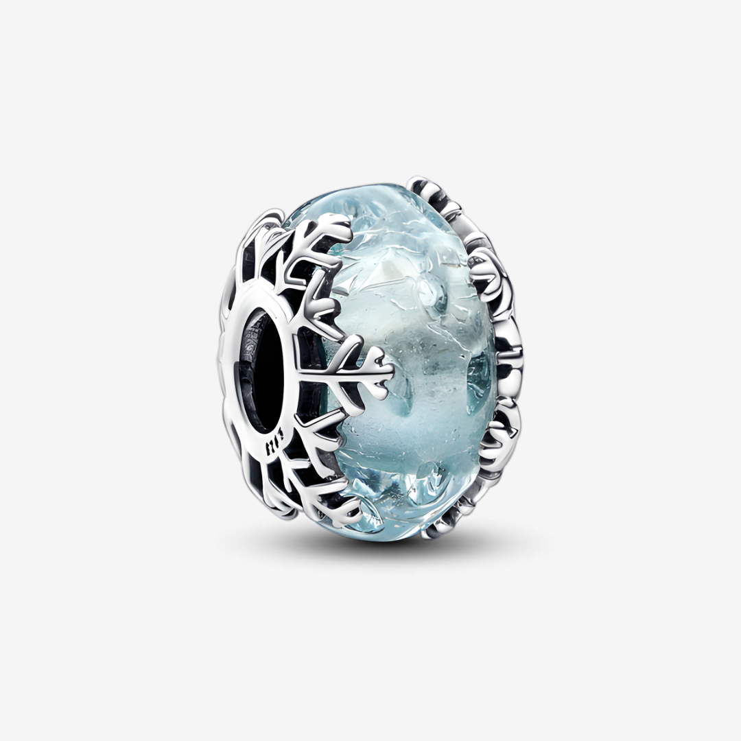 ❄️ Сребърен талисман „Снежинка“ - красиво декориран с блестящи бели и сини кристали, които придават ефект на искрящ лед. Идеален за зимни и празнични гривни, този талисман носи духа на снега и коледната магия.
