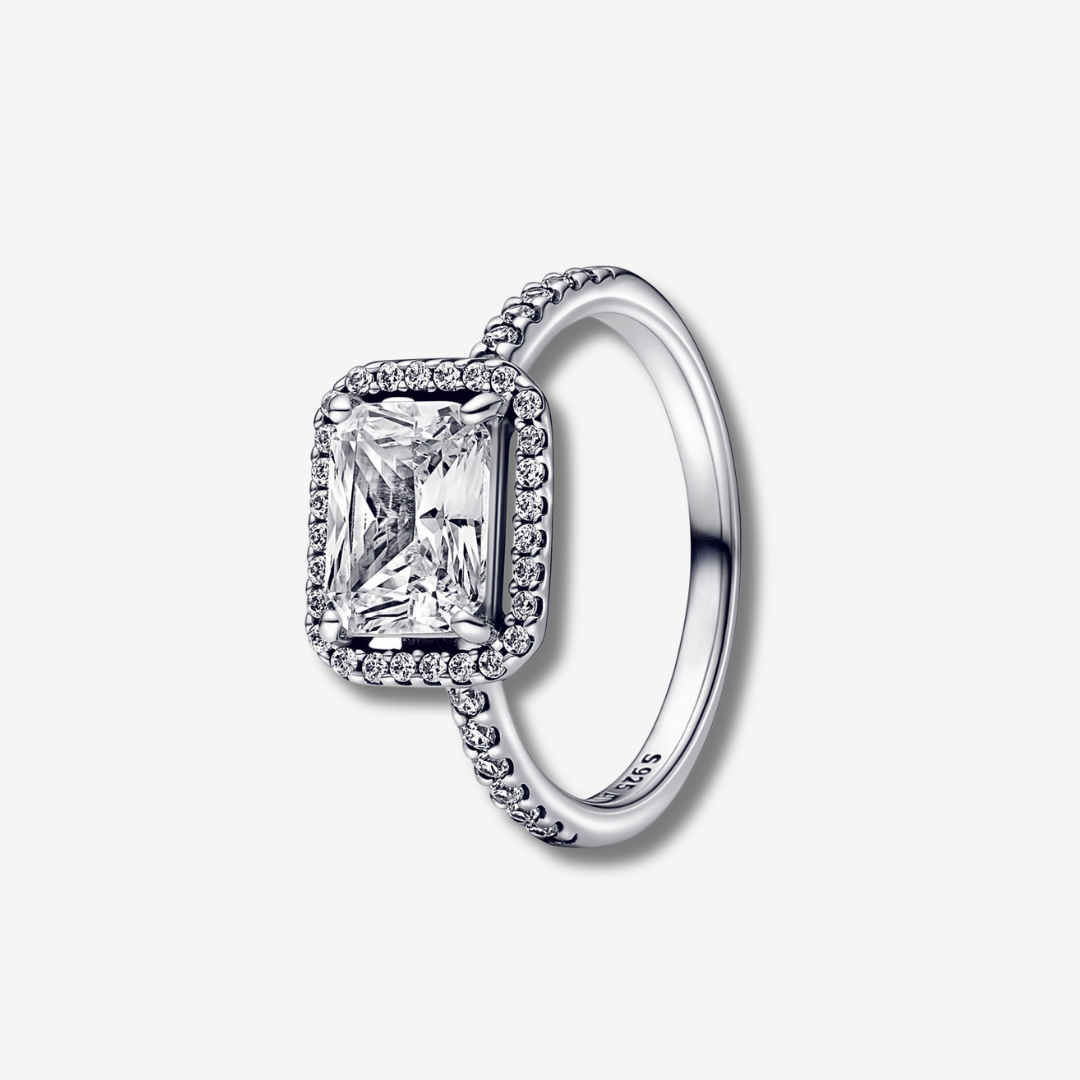 Неговият впечатляващ правоъгълен централен камък излъчва чистота и сила, а фините обгръщащи го кристали придават усещане за истински лукс ?. Създаден с внимание към детайла, този пръстен е символ на увереност, женственост и неповторим стил ✨.