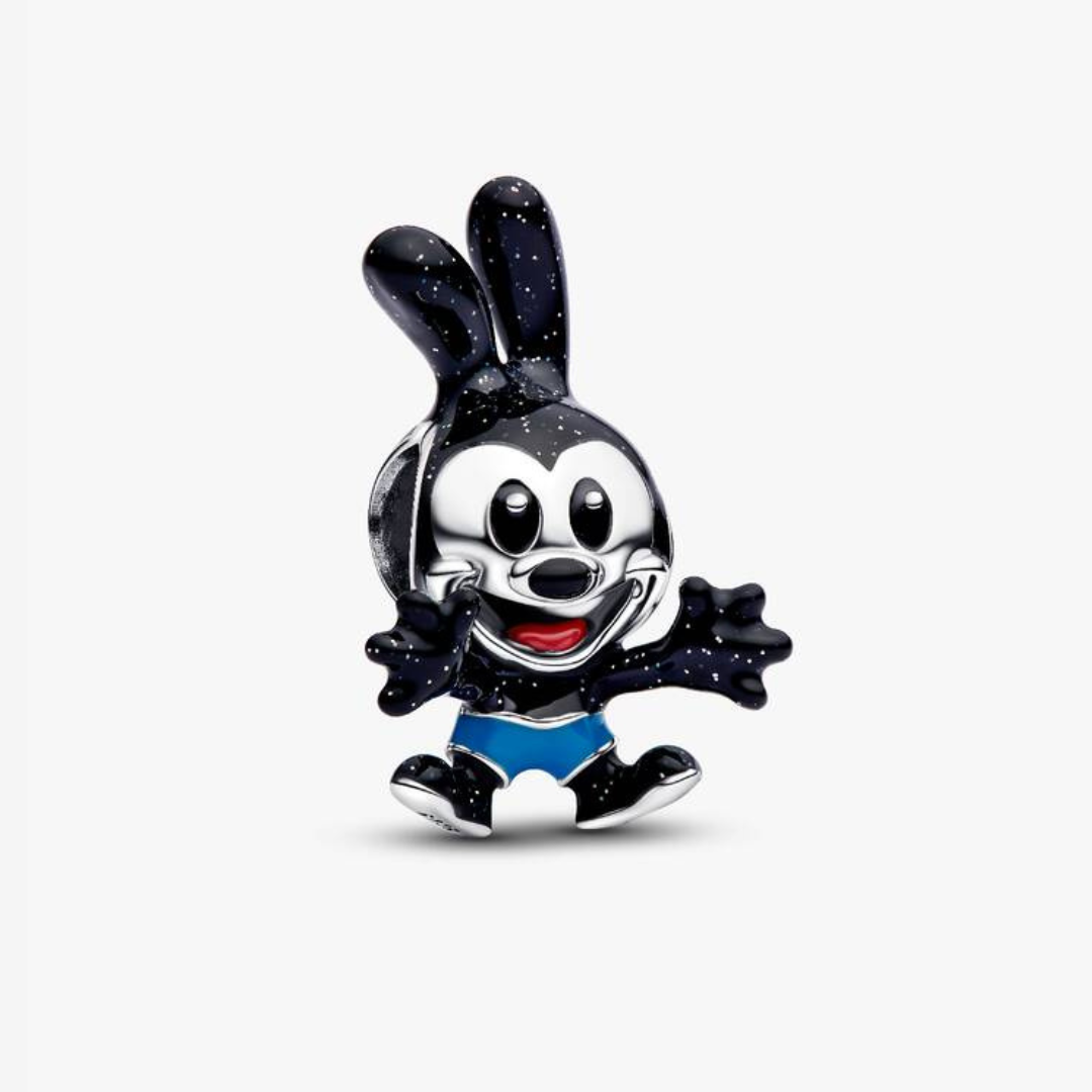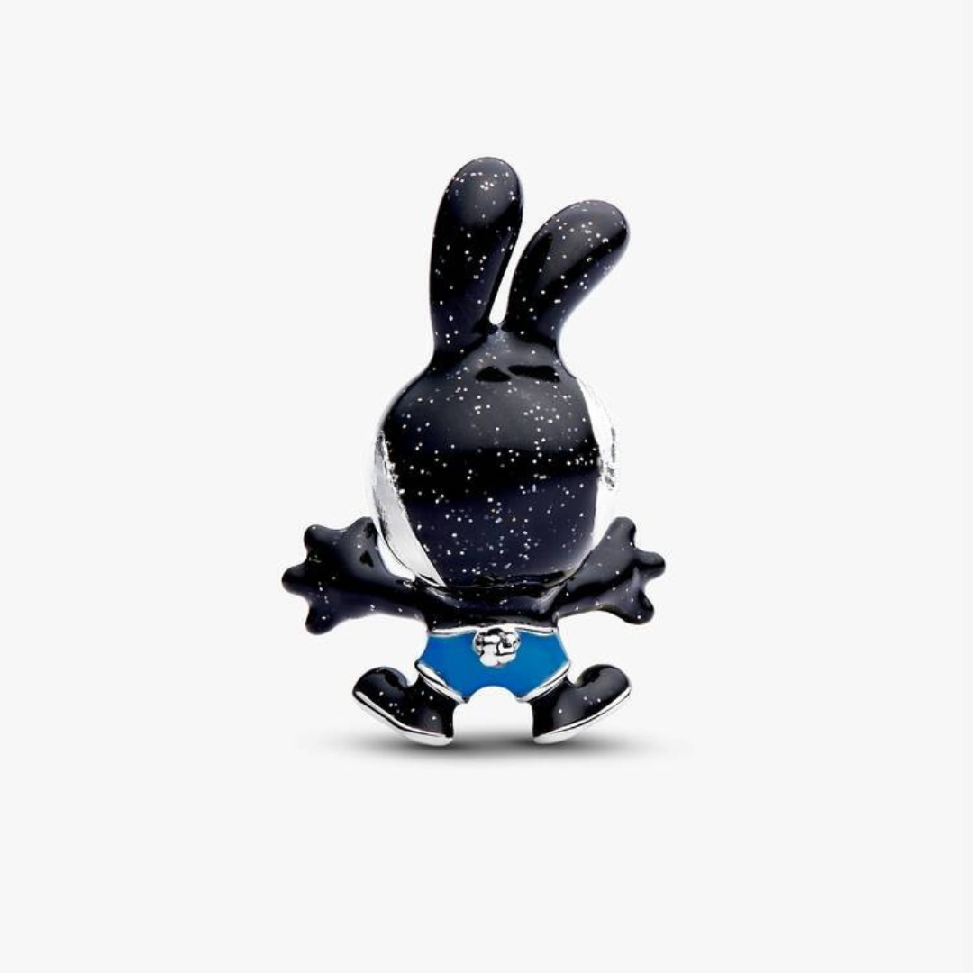✨ Изработен от сребро с фин контраст между полирани и оксидирани детайли, талисманът пресъздава характерния ретро облик на Освалд - с дългите уши, закачливата усмивка и неподражаемото излъчване! 🐰🖤 Дизайнът му е едновременно носталгичен и стилен, което го прави чудесен акцент към всяка гривна или колекция.