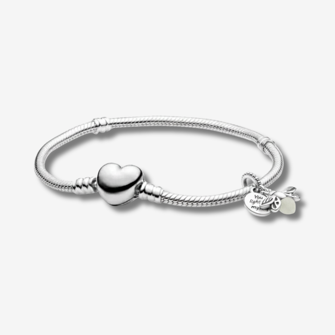 ✨ Нежен и символичен сет със сребърна гривна „Любов“ и талисман светулка, който свети в тъмното и напомня, че любовта винаги намира пътя си.