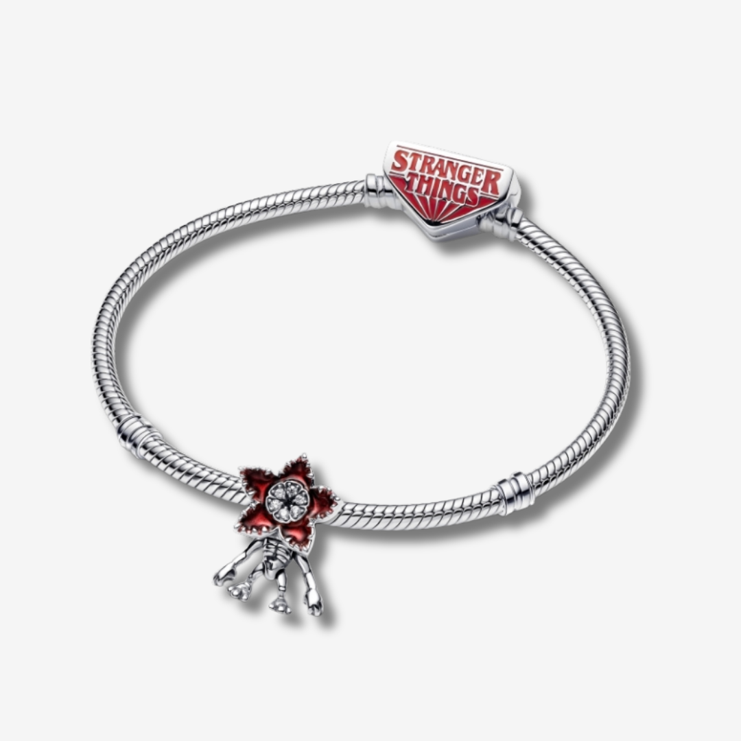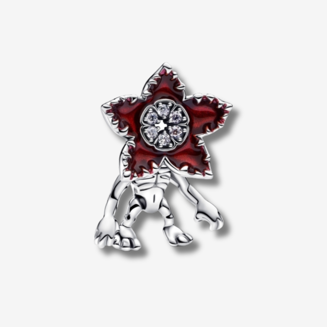 🖤 Сребърният талисман „Демогоргон“ - Stranger Things е впечатляващо бижу, вдъхновено от емблематичното създание от култовия сериал Странни неща. Изработен от сребро 925, талисманът пресъздава характерния облик на Демогоргона с разтворена цветоподобна глава, покрита с дълбок червен емайл и акцент от блестящи камъни в центъра.