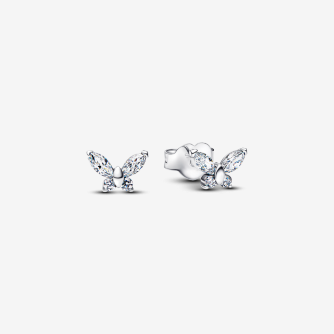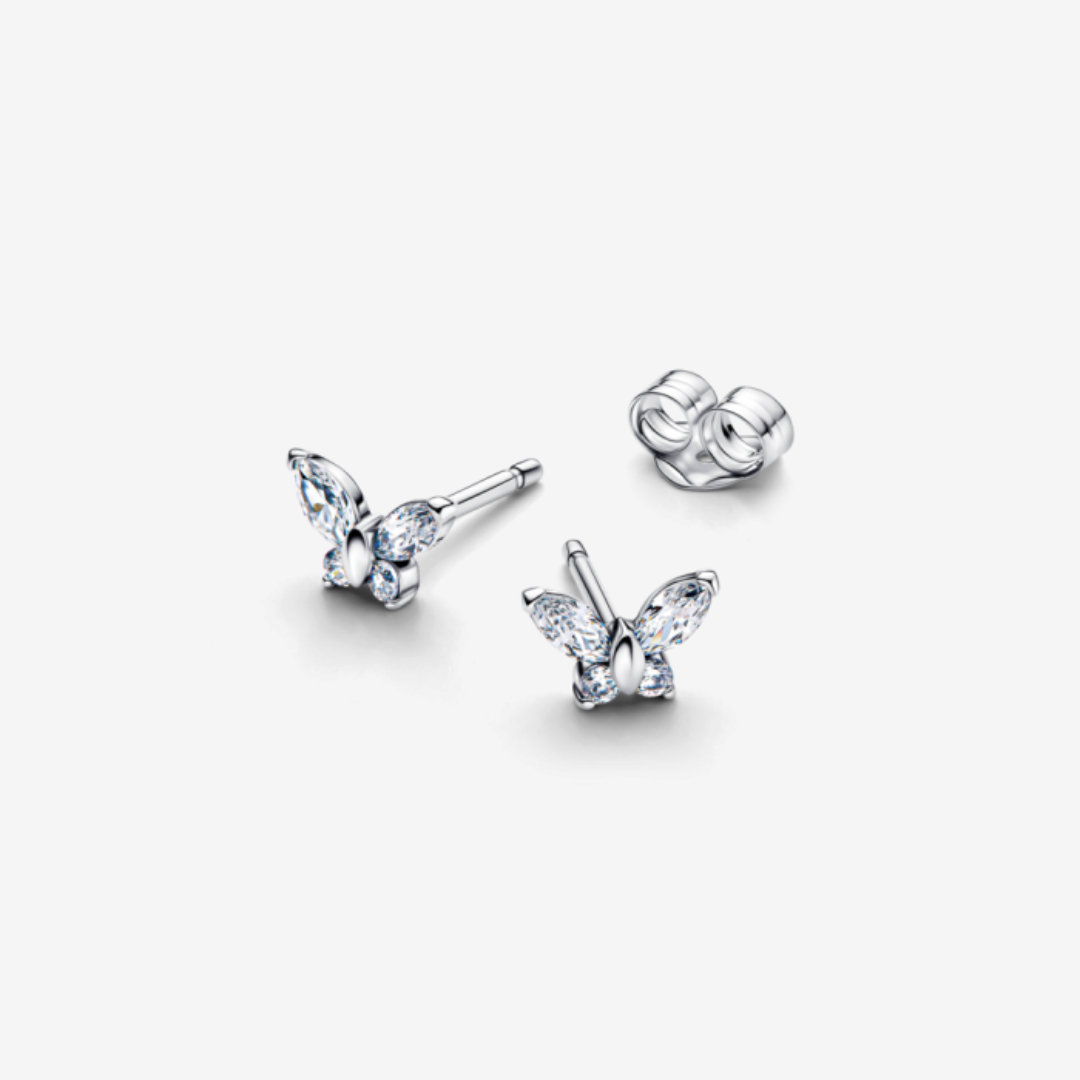 ✨ Нежни сребърни обеци с форма на пеперуда, обсипани с фино блестящи камъни. Символ на чистота, лекота и ново начало - идеални за всекидневна елегантност.